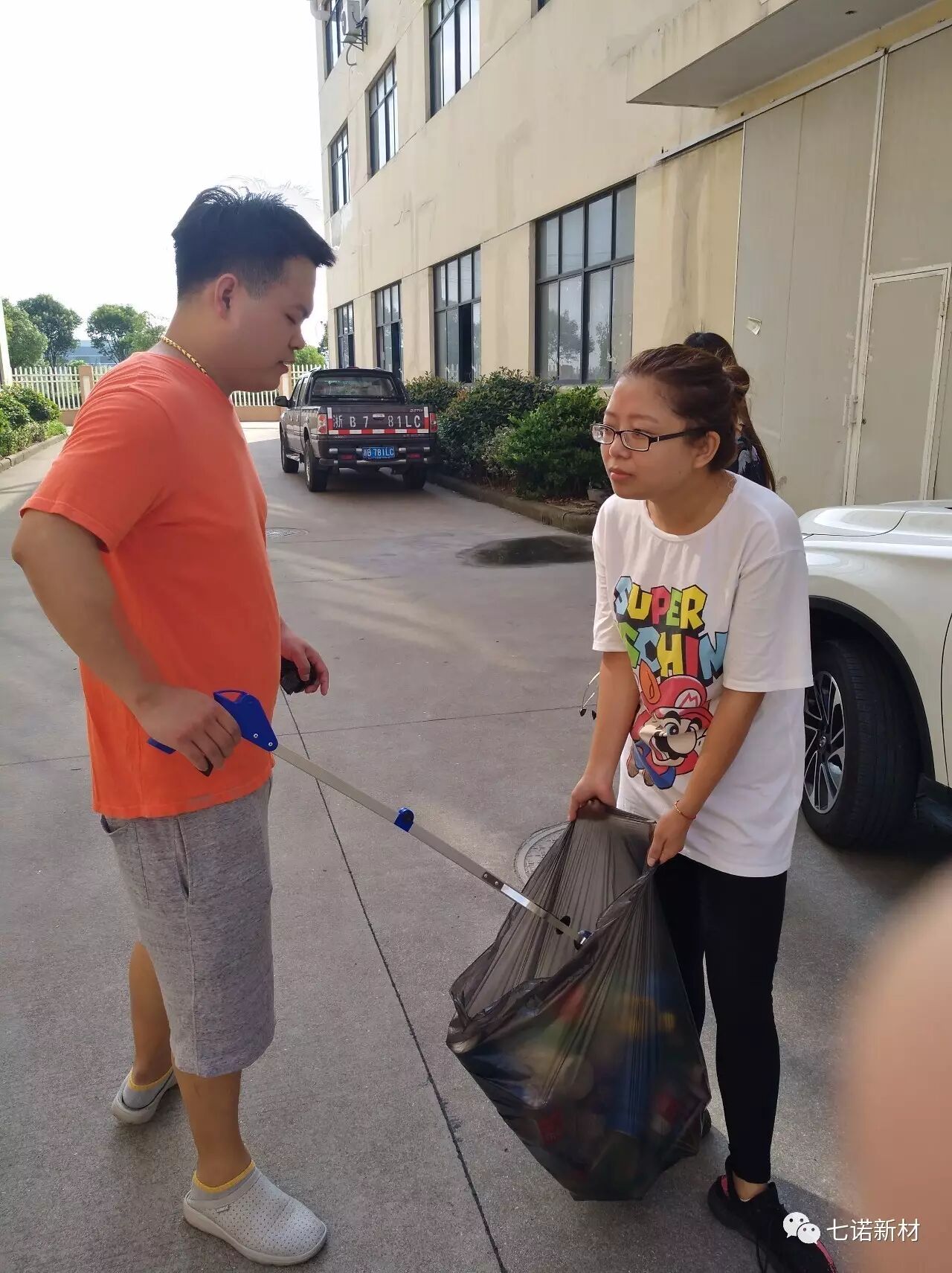 本周二上午的捡垃圾活动圆满结束啦!! 在这么一个阳光炎炎的夏日早晨,我们七诺家族,拿起钳子,捡垃圾,为科创园的颜值做出自己的一份小贡献,更是捡回我们遗失的素质。 七