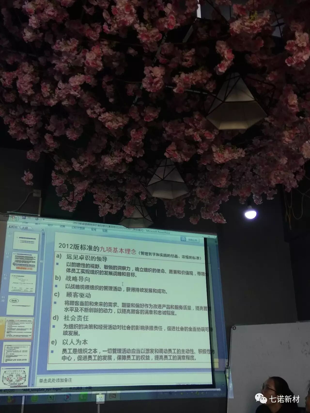 七诺新材为了提高公司员工的质量意识,为客户提供高品质的产品与服务。在2017年9月2日,我们公司组织了“质量管理体系”培训。 此次培训特别邀请了资深专家王老师。 一上午的时间,王老师用深入浅出、由点到面的方式对“卓越绩效模式”进行了讲解,使得原本生涩的理论知识,变得生动活泼,通俗易懂。 全面质量管理不仅应贯穿于公司经营活动,还应成为一种企业文化建设,实现自觉自愿的全员参与。 使企业内部形成共同的价值观、道德准则和行为规范,形成全体员工共同的凝聚力、约束力和推动力,牢固树立起以顾客为关注焦点的质量服务意识。
